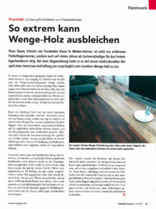 Lichteempfindlichkeit von Parkettböden. Holz verändert sich im Laufe der Zeit durch UV-Einstrahlung. Eindrucksvoll wird dies an einem Fall mit Wenge-Holz sichtbar